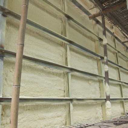 Spray coating is designed for civil cold storage, bus ceiling, building roof and arch building and made of insulation materials, flexible and convenient construction. The B component is isocyanate. Component A is composed of polyether polyol, foaming agent, catalyst, foam stabilizer and other raw materials. Spraying technology: black and white materials are heated and pressurized through the spraying machine, forming a high pressure impact in the spray gun, forming a vortex mixing is very full. High-speed movement of the material at the nozzle to form a fine mist droplets, uniform spray to the surface of the object.